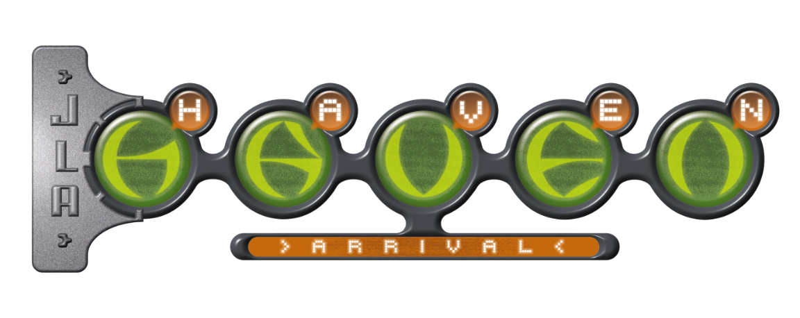 Title masthead lettering of DC Comics book JLA Haven Arrival